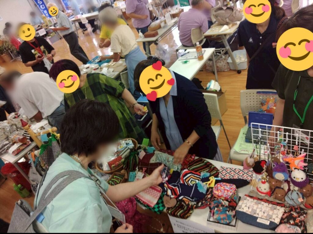 手芸メンバーは素敵な作品を作成し、その作品を販売!!温泉の森のブース前は人の列が途切れていませんでした(^^)/なので大忙し!交代でお弁当も食べていましたが、良い表情でした(^^♪そして、作成から販売と自ら行うことでの達成感!!もちろん疲労もありましたが心地よい疲労感で笑顔もたくさん見られました(^^)/