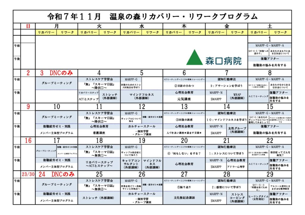 そのほか、治療プログラムも充実しております。不明な点は温泉の森までご連絡ください。